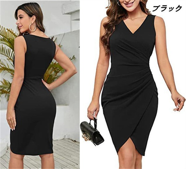 ワンピース スイングワンピース Vネック レディース 7色 S-XLsize ノースリーブ 結婚式 二次会 パーティー 24zm176