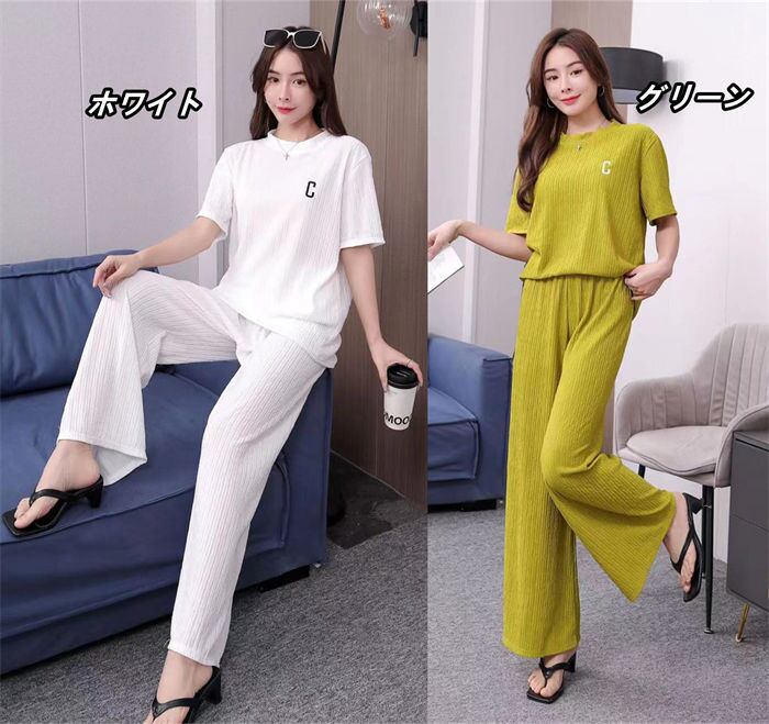 セットアップ ルームウェア 部屋着 レディース 9色 フリーサイズ ロングパンツ ゆったり 春夏 旅行 スポーツウェア 24zm222