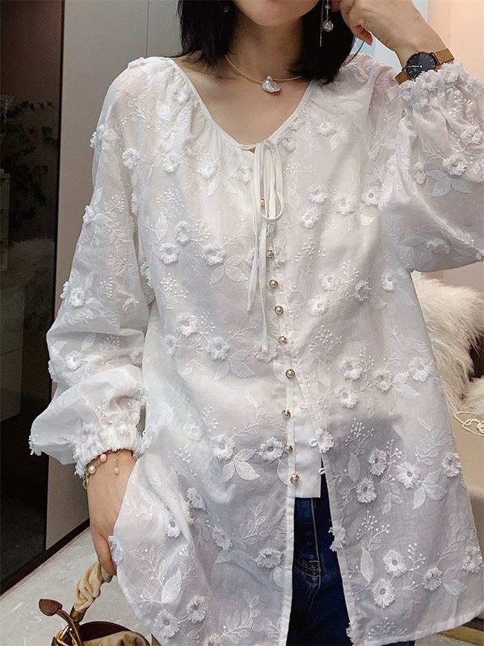 ■商品説明 ブラウス レース 白ブラウス シャツ レディース S-XL おしゃれ 薄手 長袖 トップス 韓国 ファッション コーデ おすすめ カジュアル きれいめ 大きいサイズ 人気 ゆったり 20代 30代 40代 50代