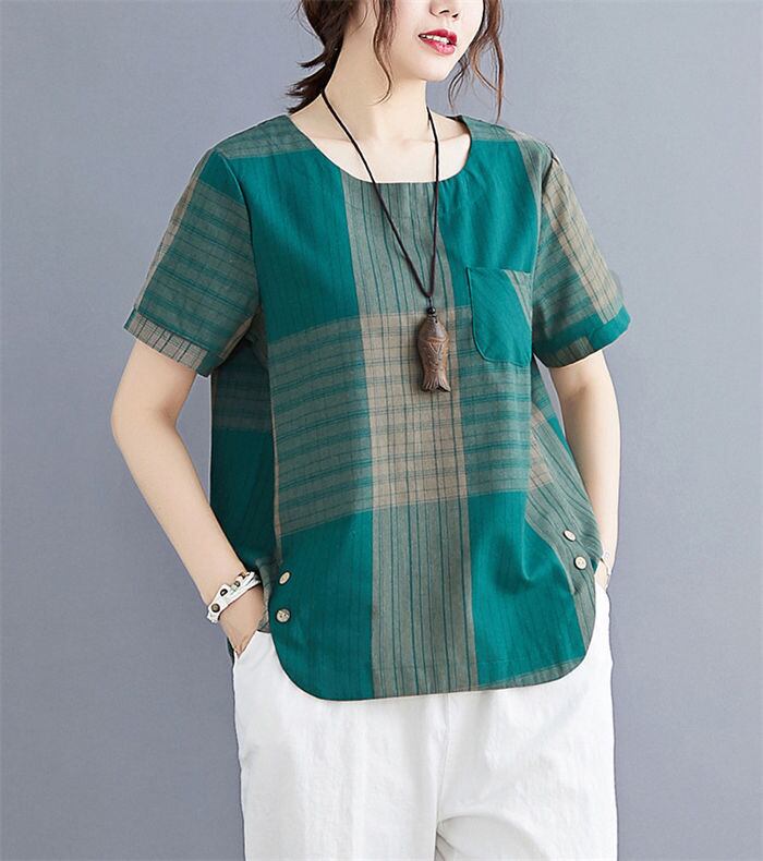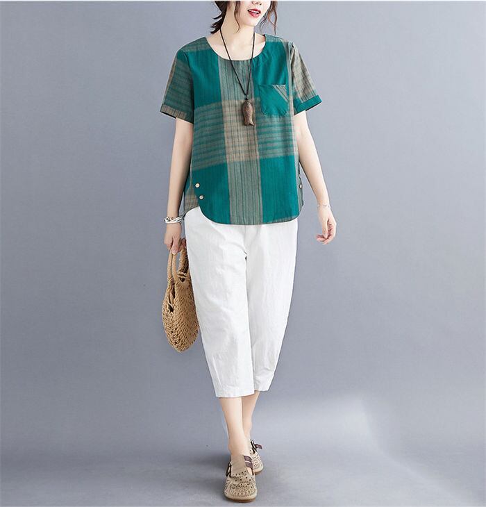 ■商品説明 ブラウス tシャツ 半袖 リネン 綿麻 レディース 3色 M-3XL チェック柄 カジュアル 夏 おしゃれ 韓国 ファッション コーデ おすすめ カジュアル きれいめ 大きいサイズ 人気 ゆったり 20代 30代 40代 50代