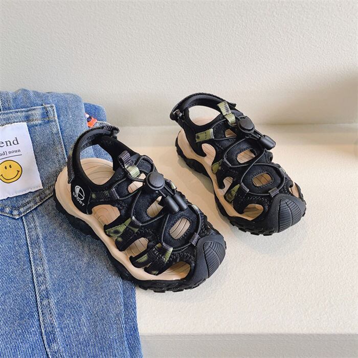 アウトドアやビーチでのお供に最適なサンダルです。爽やかなブルーとカジュアルなブラック、どちらもおしゃれなデザインでお子様のコーディネートにもピッタリ!元気いっぱいのお子様にお気に入りの一足として、ぜひお求めください。