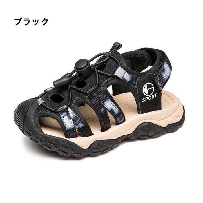 ★特徴:カジュアルなスタイルからアクティブなアウトドアまで、幅広いシーンで活躍するスポーツサンダルが登場しました!男の子用のキッズサイズで、2色展開でお手元にお届けします。幅広いサイズ展開もございますので、小学生のお子様にもピッタリフィット。歩きやすく、安定感のあるデザインは、海やプール、アウトドアイベントにも最適です。