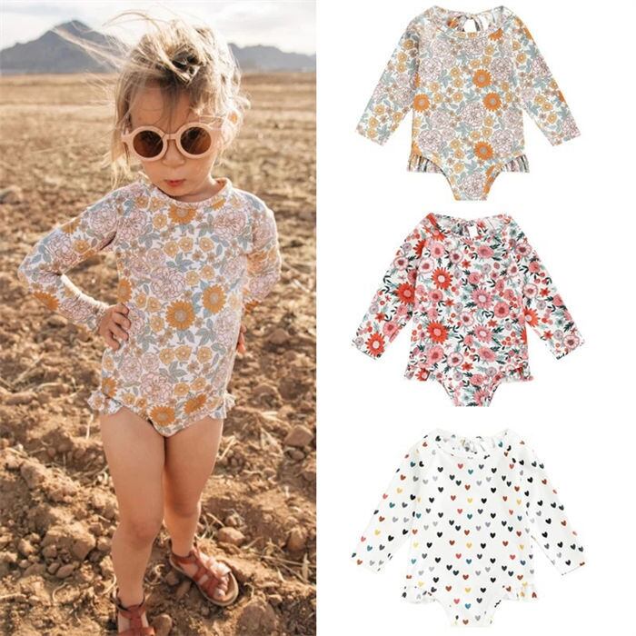 ベビー水着 キッズ 女の子 子供用 オールインワン 3色 90-130㎝ UVカット プール 幼稚園 保育園 小学生 24zm303