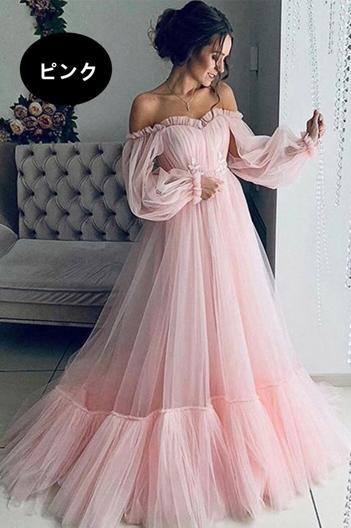 ワンピース ドレス ウェディングドレス レディース 3色 S-2XLsize ロング丈 オフショルダー 結婚式 二次会 パーティー 24zm348
