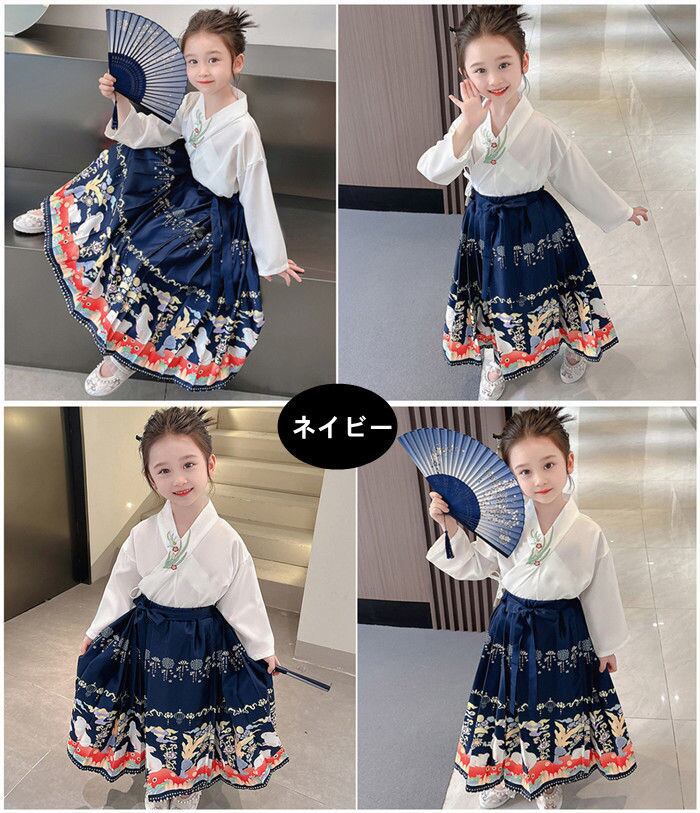 ★特徴:中国風のセットアップ上下セット、マミアンスカートが新登場! 子供用の女の子向けアイテムで、4色展開、90-140㎝サイズまで取り揃えています。民族風のデザインはイベントやステージ衣装にもぴったり!