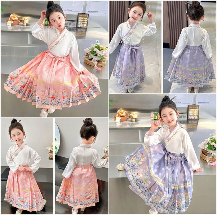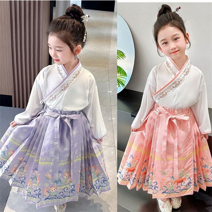 セットアップ 上下セット 中国風 マミアンスカート 子供用 女の子 4色 90-140㎝ 民族服 イベント衣装 ステージ衣装 24zm367