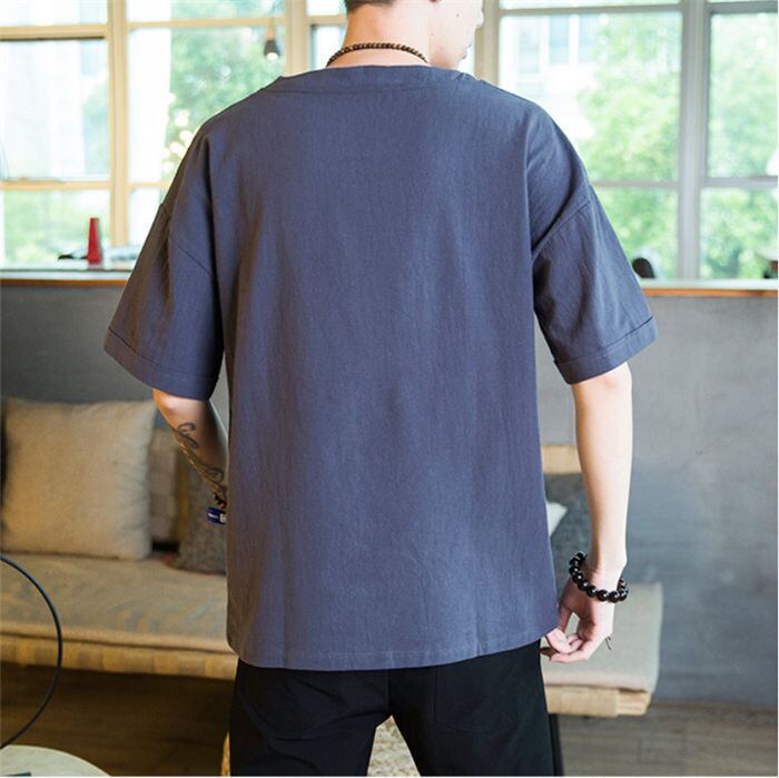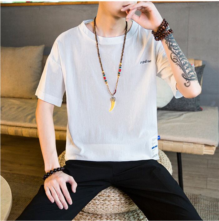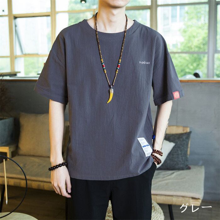 tシャツ 五分袖 綿麻 メンズ 5色 M-5XLsize リネン 無地 ゆったり カジュアル おしゃれ 大きいサイズ 24zm439