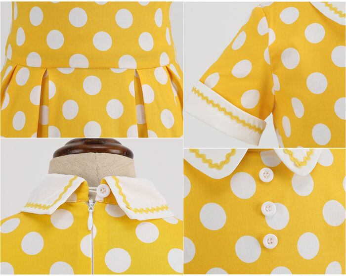 ★特徴:キラキラ輝く子供たちにぴったりの可愛いワンピースドレスが登場しました! Aラインのデザインと水玉のドット柄が相まって、レトロで可愛らしい雰囲気が漂います。小学生の女の子たちに人気のデザインで、コーディネート次第で様々なシーンで活躍してくれること間違いなし!サイズ展開も豊富で、110㎝から150㎝まで対応しているので、成長期のお子様にも長く着られます。