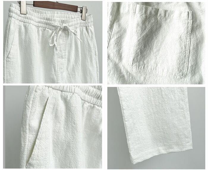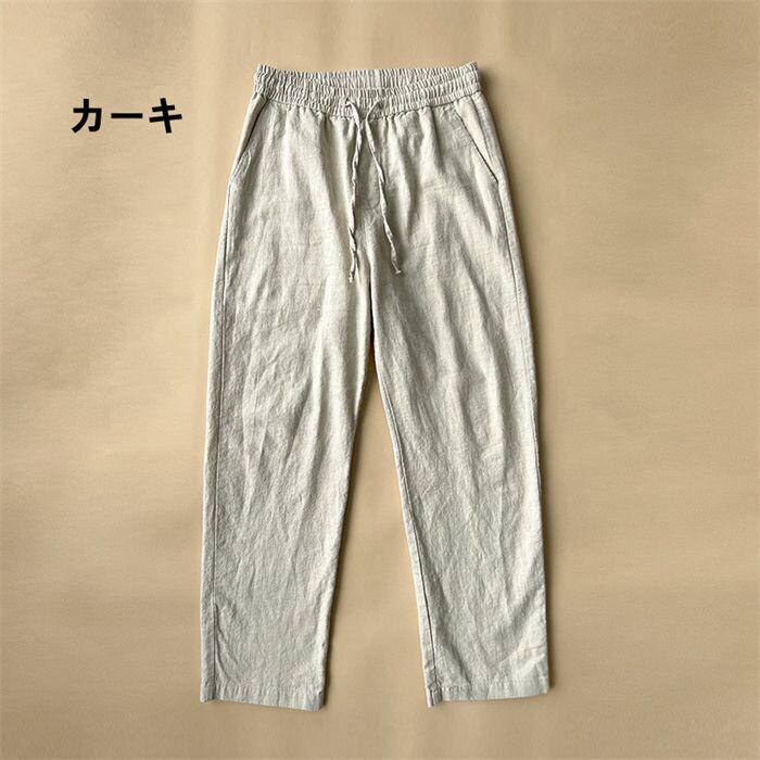 このリネンパンツは、暑い季節にぴったりで、おしゃれにも機能的にも優れた一枚です。是非、夏のコーディネートに取り入れてみてください。