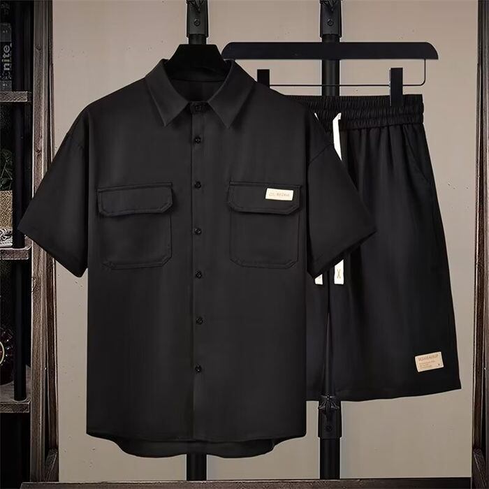 ★特徴:おしゃれなセットアップが新登場!シンプルでスタイリッシュな半袖シャツとハーフパンツのセットです。ブラックカラーで、どんな場面にもマッチするカジュアルなデザイン。ウエストゴム付きで快適な着心地も魅力的です。サイズはMから3XLまで対応しており、幅広い体型の方にもオススメです。ファッションセンスが光る一着で、カジュアルな日常コーディネートにぴったり。シャツとパンツの組み合わせでスタイリッシュさを演出しましょう!