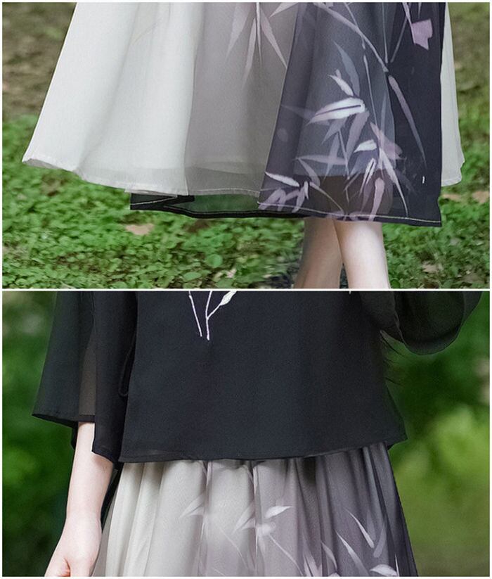 ★特徴:個性的で上品なチャイナドレス 上下セットをご紹介します。上品な黒の色合いが美しいブラウスと、シフォンスカートのセットです。ブラウスはレースをあしらったエレガントなデザインで、上品な雰囲気を演出。シフォンスカートは軽やかな着心地で、女性らしいシルエットを作ります。また、M-4XLsizeまで豊富なサイズ展開がありますので、様々な体型の方にも対応しています。