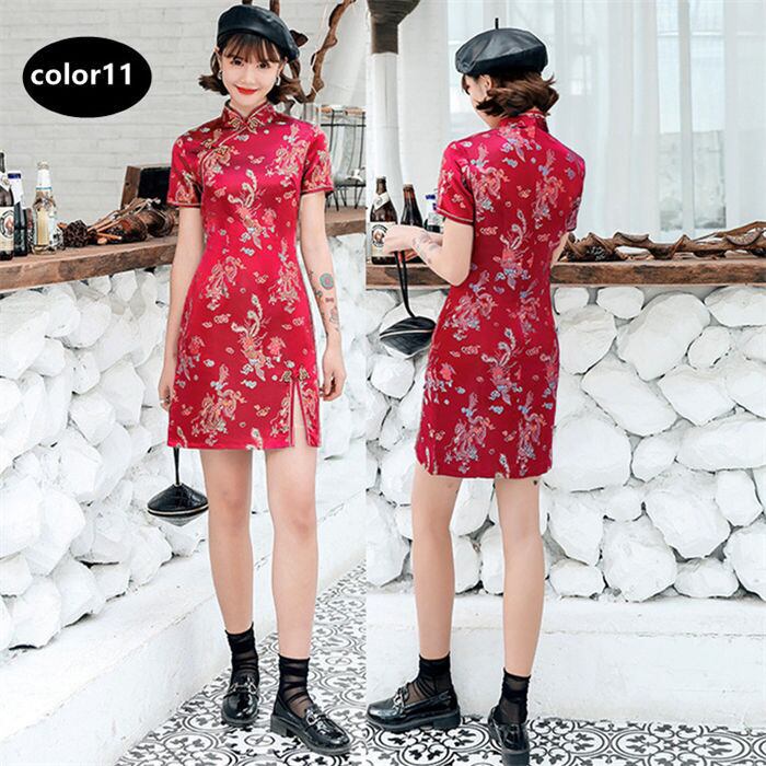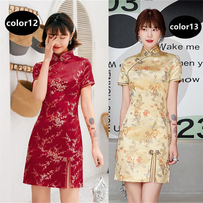 チャイナドレス ワンピース 半袖 ミニ丈 レディース 13色 S-3XLsize コスプレ パーティードレス イベント 衣装 24zm711