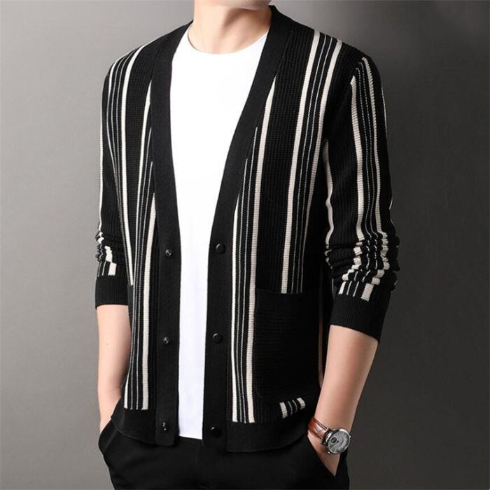 ■商品 ニットカーディガン カーディガン メンズ 3色 M-4XLsize 長袖 ストライプ Vネック きれいめ 秋冬 韓国 ファッション コーデ おすすめ カジュアル きれいめ 大きいサイズ 人気 ゆったり 20代 30代 40代 50代
