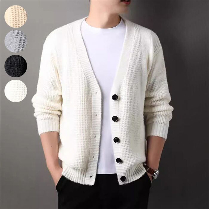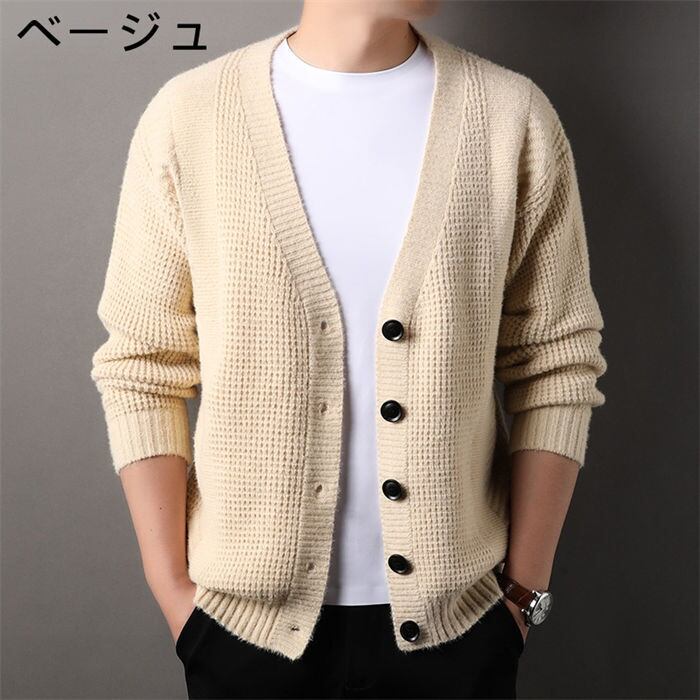 ニットカーディガン カーディガン メンズ 4色 M-3XLsize 長袖 無地 Vネック カジュアル きれいめ 秋冬 24zm796