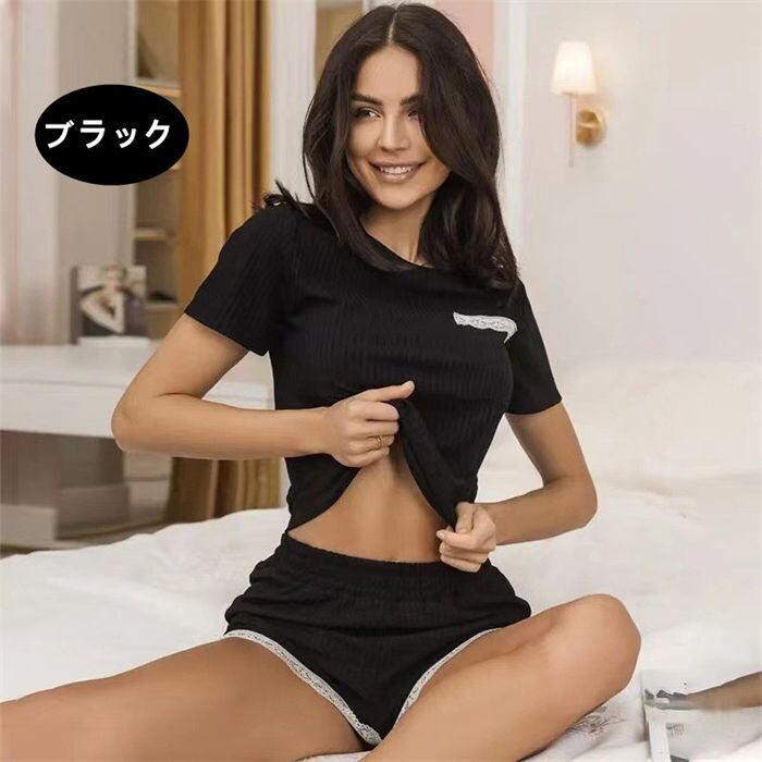 ルームウェア 上下セット レディース 4色 S-2XLsize 半袖 短パン 部屋着 ナイトウェア 24zm810