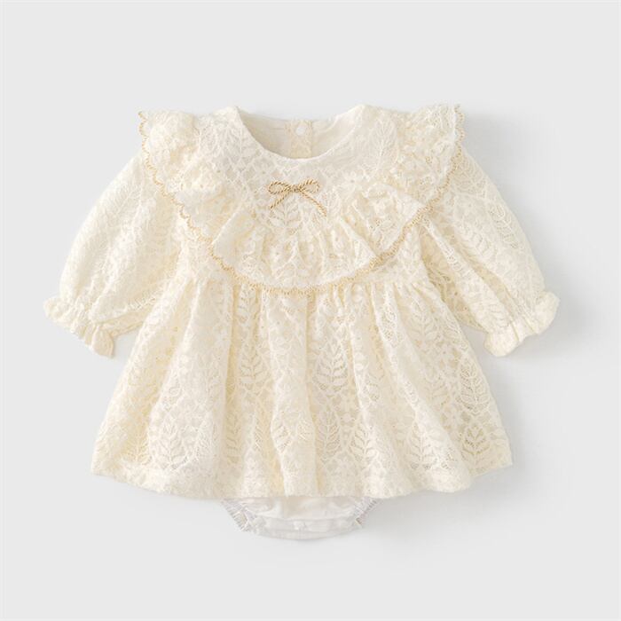 ■商品 ベビードレス ロンパース 女の子 キッズドレス ベージュ 59-90㎝ 長袖 ベビー服 お宮参り 記念撮影 韓国 ファッション コーデ おすすめ カジュアル きれいめ 大きいサイズ 人気 ゆったり 20代 30代 40代 50代