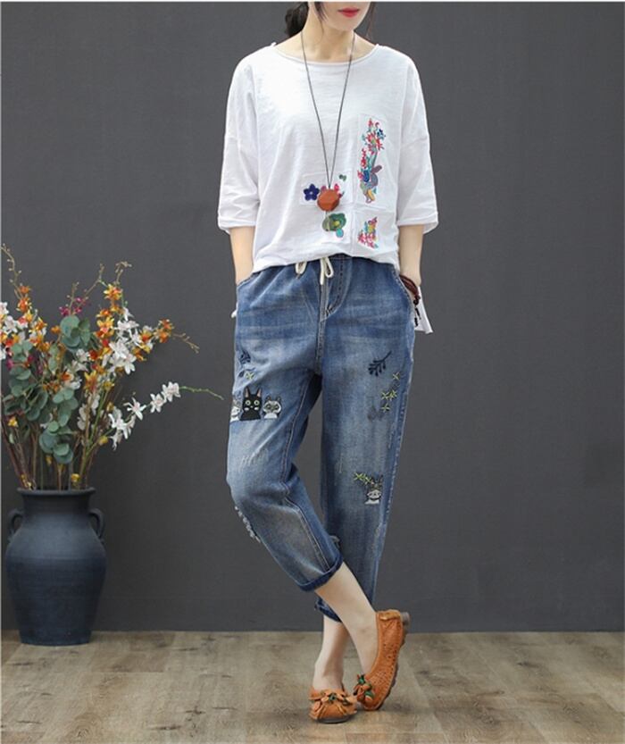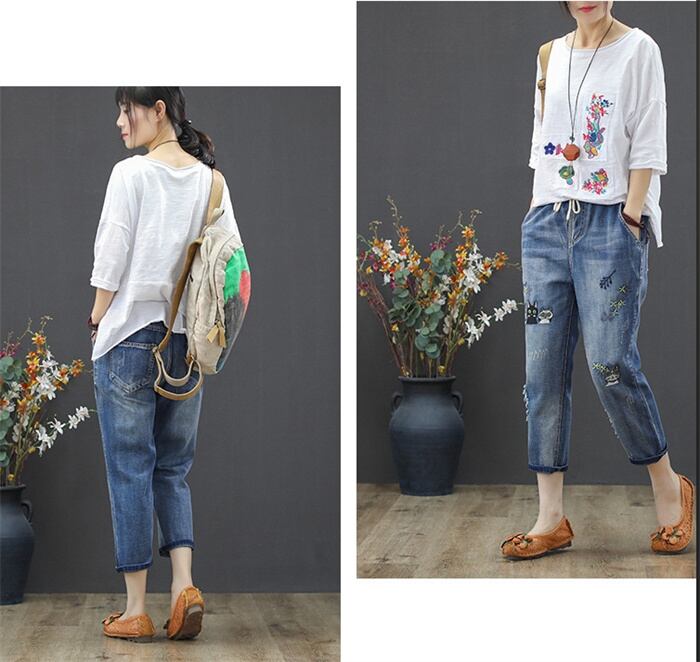 デニムパンツ 七分丈 テイパードデニム レディース 3type S-3XL ゆったり カジュアル ジーンズ 24zm923
