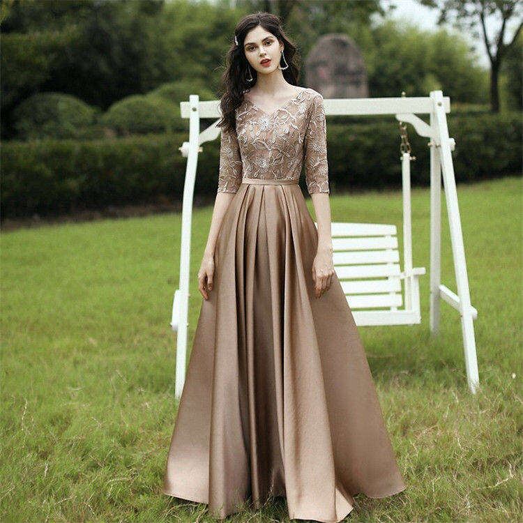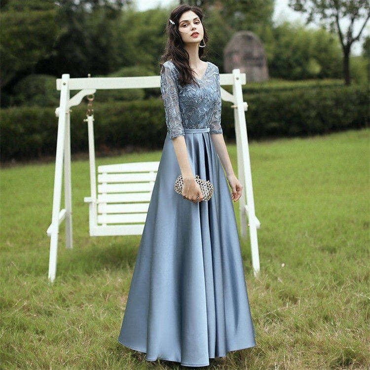 ■商品 パーティードレス ワンピース レディース 8色 XS-3XL 五分袖 Vネック 刺繍 フォーマル ロングドレス 結婚式 二次会 韓国 ファッション コーデ おすすめ カジュアル きれいめ 大きいサイズ 人気 ゆったり 20代 30代 40代 50代