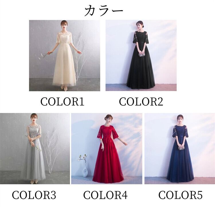 パーティードレス ワンピース レディース 5色 XS-3XL 五分袖 刺繍 レース ロングドレス 結婚式 二次会 24zm945
