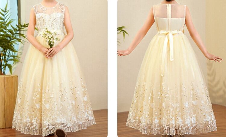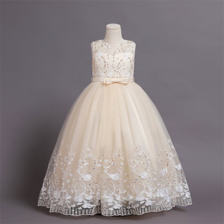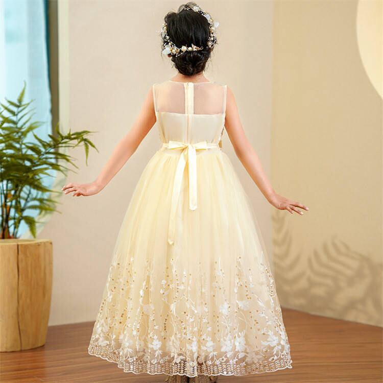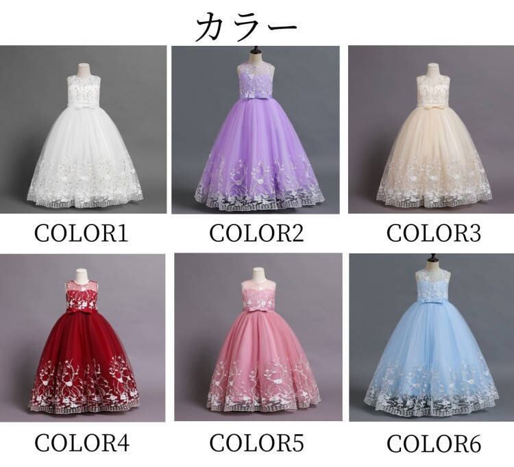 キッズドレス ワンピース ノースリーブ 女の子 子供用 6色 110-160㎝ 刺繍 レースドレス 発表会 結婚式 24zm956