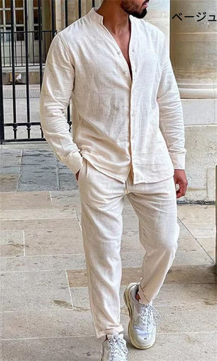 セットアップ 上下セット メンズ 綿麻 4色 S-3XL リゾート リネン カジュアル 24zm986
