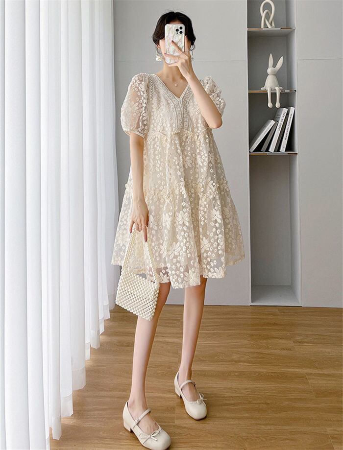 ■商品 ワンピース マタニティーワンピース 半袖 レディース M-4XL 春夏 Vネック レース 花柄 ママ 韓国 ファッション コーデ おすすめ カジュアル きれいめ 大きいサイズ 人気 ゆったり 20代 30代 40代 50代