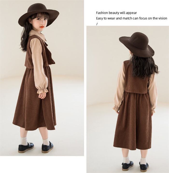 ■商品 ワンピース フェイクレイヤード 女の子 子供服 ブラウン系 120-165㎝ 2type 長袖 ロング丈 韓国 ファッション コーデ おすすめ カジュアル きれいめ 大きいサイズ 人気 ゆったり 20代 30代 40代 50代