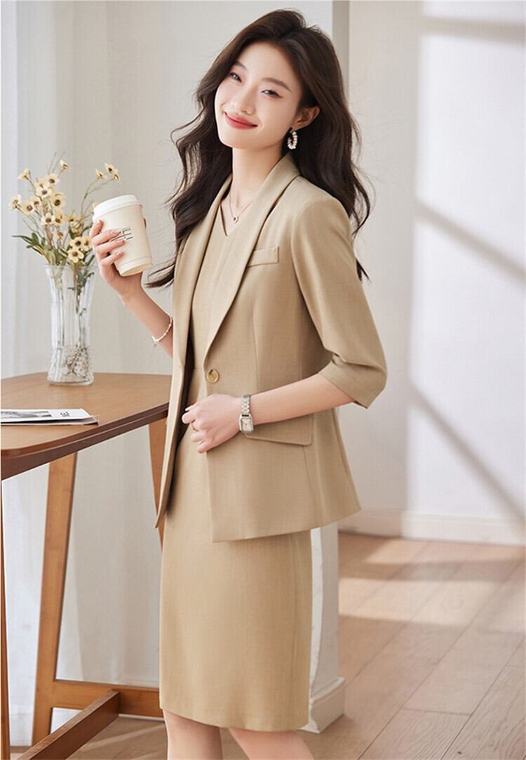 スーツ セットアップ テーラードジャケット ワンピース レディース 4色 S-4XL ビジネス 入学式 24zm1238