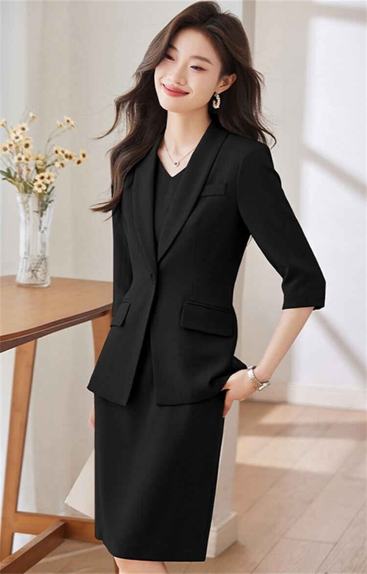 テーラードジャケットは、体のラインを美しく見せるデザインでありながら、動きやすさを重視した仕立てになっています。ワンピースは一体型で着やすく、ビジネスや特別なイベントでも自信を持ってご着用いただけます。どんなスタイルにも合わせやすく、流行に左右されない timelessなアイテムです!