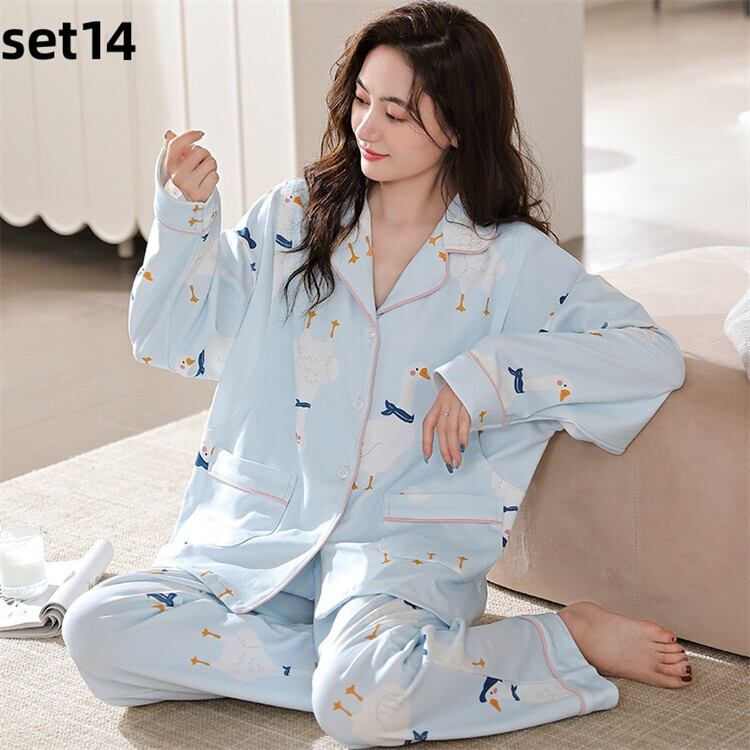 パジャマ ルームウェア 長袖 マタニティーパジャマ 授乳口付き レディース 18色 M-3XL 上下セット 綿 25zm35