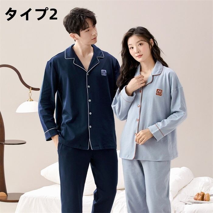 パジャマ ルームウェア 長袖 レディース メンズ 5色 M-3XL 春秋 ペアルック 部屋着 上下セット 25zm46