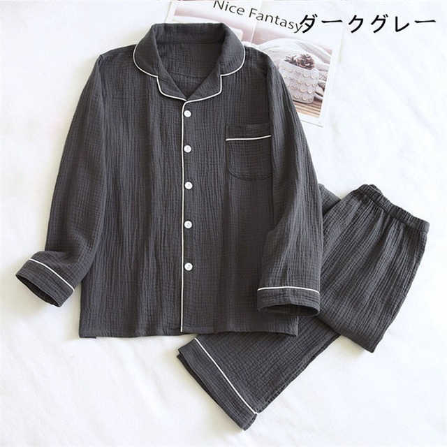 パジャマ ルームウェア メンズ 長袖 2色 M-2XL ガーゼ素材 春夏 薄手 部屋着 上下セット 25zm49