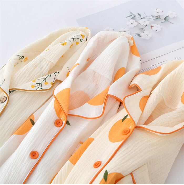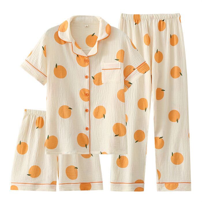 パジャマ ルームウェア レディース 3点セット 4色 M-2XL 半袖 ガーゼ素材 綿 春秋 部屋着 上下セット 25zm51