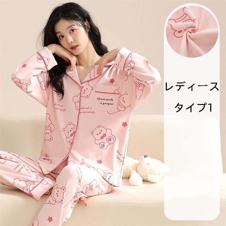 パジャマ ルームウェア レディース メンズ 10type M-3XL お揃い ペア 長袖 春夏秋 部屋着 上下セット かわいい 25zm58