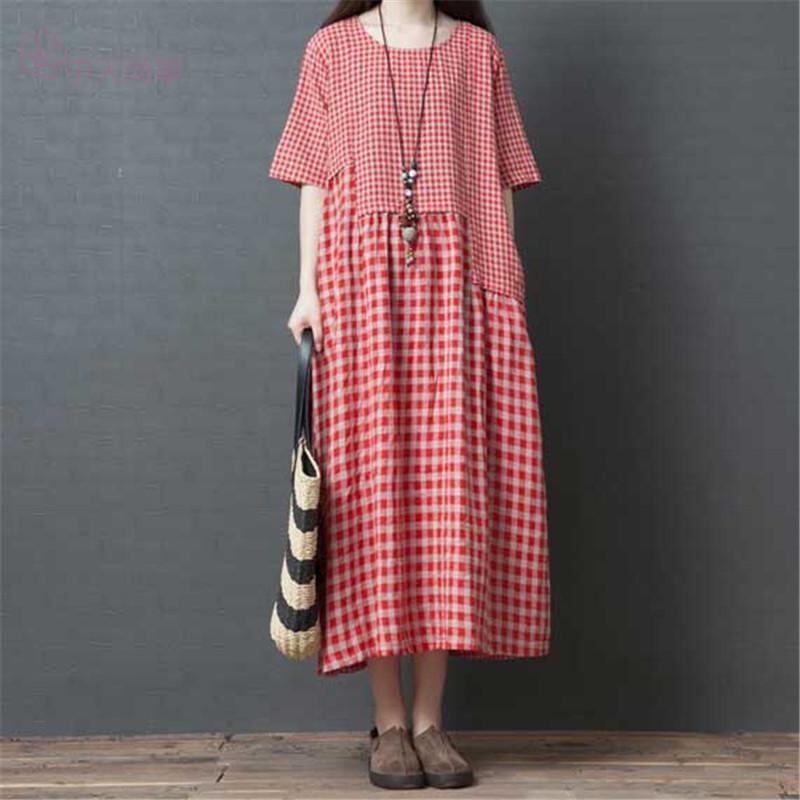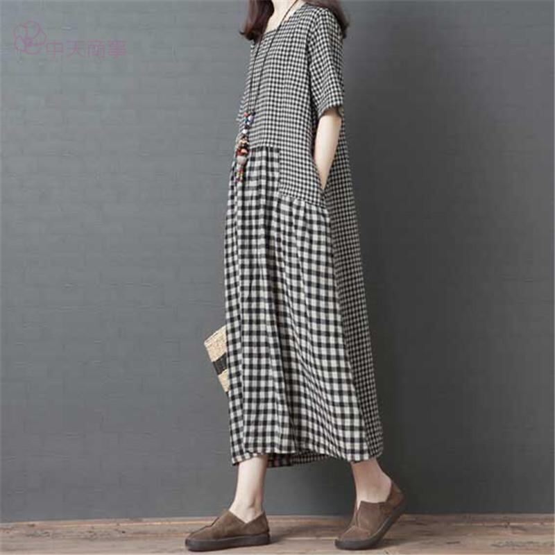 ワンピース ギンガムチェック レディース 2色 M-2XL カジュアル ロング丈 半袖 ゆったり 25zmx10