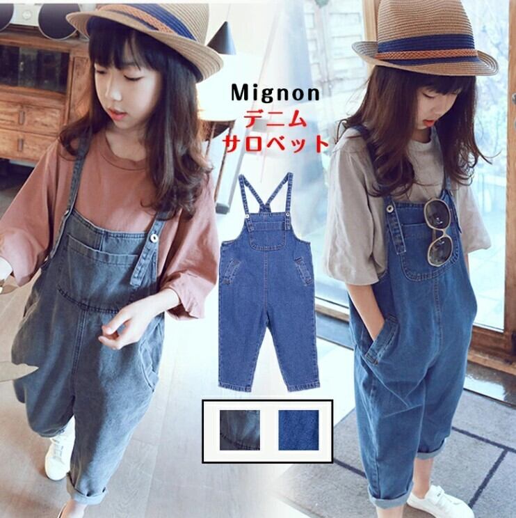 デニムサロペット オーバーオール キッズ 女の子 2色 120-160㎝ カジュアル 子供服 デニム 25zmx22