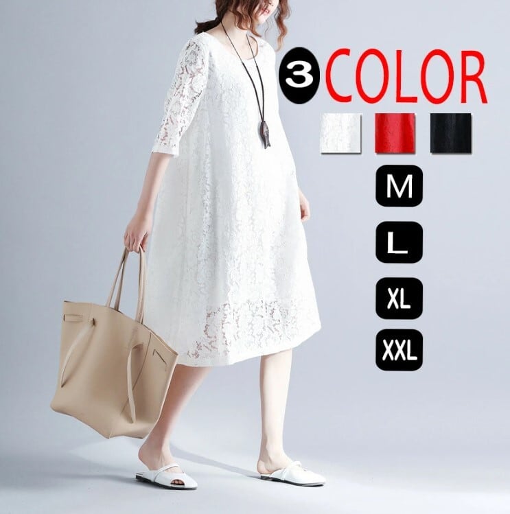 ■商品 ワンピース パーティードレス レディース 3色 M-2XL 総レース 五分袖 フォーマル 結婚式 発表会 韓国 ファッション コーデ おすすめ カジュアル きれいめ 大きいサイズ 人気 ゆったり 20代 30代 40代 50代