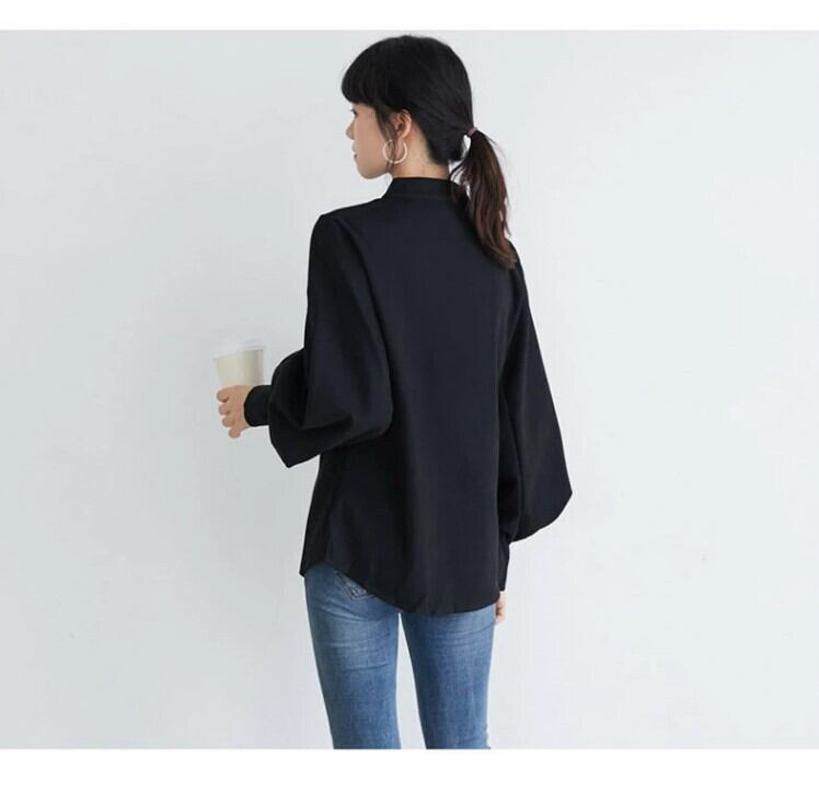 ブラウス シャツ パフスリーブ レディース 4色 S-XL 無地 きれいめ オフィス カジュアル 春秋 25zmx40