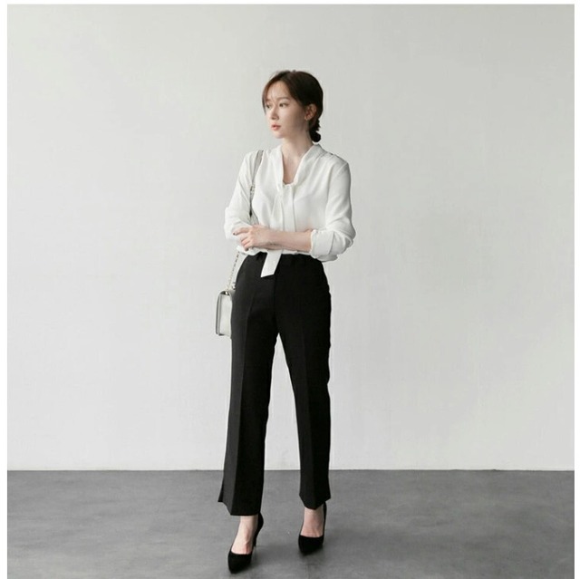 このブラウスの魅力は、軽やかなシフォン素材による柔らかな風合いです。長袖のデザインが女性らしさを演出しつつ、オフィスでの動きやすさも考慮されています。きれいめスタイルにぴったりで、カジュアルはもちろん、ビジネスシーンでも活躍する万能なアイテムです。シンプルながらも洗練された印象を与え、自信を持ってお出かけいただけます。