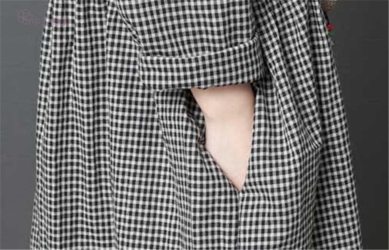 ワンピース ギンガムチェック レディース M-2XL 長袖 ゆったり 長袖 フレア カジュアル 25zmx74